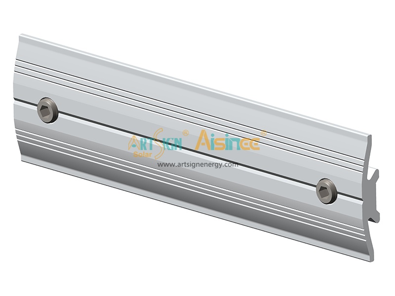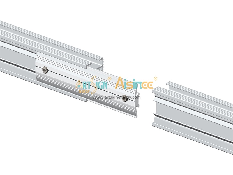 Fissare la giunzione del binario AS-RS-09 inserendola nei profili in alluminio e serrando le viti di fissaggio M8 a punta piatta. Questo metodo di fissaggio interno garantisce una connessione a filo e ad alta resistenza lungo la giunzione del binario solare.